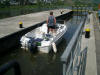 zu sein. Also, Boot in die Schleuse, Leinen belegen, Hebel auf Talfahrt,