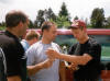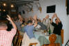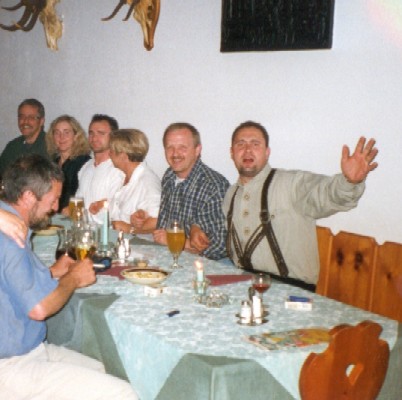 Mittwoch, 09.06.99. Wir treffen uns um 11:00 Uhr am Autobahnrasthof Gruibingen auf der A 8 hinter Weilheim/Teck. Nach einer kurzen Lagebesprechung fahren wir gemeinsam im Konvoi über Ulm, Kempten, Fernpass, Imst, Timmelsjoch, Meran in Richtung Naturns/Südtirol. Nach der Ankunft in der Pension Sylvanerhof, gegen 18.00 Uhr, und einem Bad in Pensionspool erkunden wir erstmals die Gastronomie von Naturns. Donnerstag, 10.06.99. Heute ist Wandertag. Wir fahren mit dem Bus von Naturns nach Rabland und von dort mit der Seilbahn hinauf nach Aschbach (1.360 m). Weiter gings zu Fuß hinauf zur bewirtschafteten Naturnser Alm (1.992 m) wo dann auch verdientermaßen ein deftiges Vesper eingenommen wurde. Dann kam der Abstieg "de 30er We" von 1.922 m bis runter nach Naturns auf ca. 500 m. Jeder der ihn kennt weis ihn zu schätzen. Jedenfalls hat mir jeder der vierzehn Teilnehmer nachher hoch und heilig versprochen, nie wieder mit mir eine Tour zu gehen ... und darauf haben wir dann einen getrunken ;-) Freitag, 11.06.99. Es regnet, und wenn wir eh nass werden, bietet sich auch gleich eine Raftingtour an. In Kastelbell geht´s los. Wir fahren die Etsch runter nach Naturns und veranstalten eine riesen Wasserschlacht. Schade, nach zwei Stunden ist der Spaß vorbei. Aber auch gut, denn für den Abend müssen wir noch Kräfte sammeln für die Waldschenke. Denn dort sorgen heute die Condors für Stimmung ... und wir natürlich auch :-). Samstag, 12.06.99. Irgendwie will morgens keiner aufstehen. Frühstück so gegen elf. Und was dann? Ich schlage eine "kleine" Wanderung auf die Zufallhütte ins Martelltal vor. Es folgt strikte Ablehnung. Das Mißtrauen ist noch zu groß. Wir fahren dann mit dem Auto ins Martelltal und relaxen auf Parkbänken und in Biergärten. Sonntag, 13.06.99. Leider fahren wir